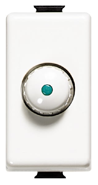 dimmer a manopola con deviatore incorporato 230 Vac 50 Hz- resistivo 60-500 W - tecnologia TRIAC/IGBT - con fusibile incorporato - 1 modulo colore bianco