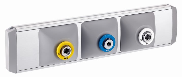 Canale gas vuoto tipo S. L= 500 mm da impiegare come involucro per la posa di tubi per il trasporto di gas medicali. Il canale è realizzato in alluminio anodizzato, finitura Tech. Dispositivo elettrico di classe I.