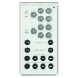 Telecomando di configurazione base, dotato di trasmettitore ad infrarossi, permette la regolazione dei principali parametri di funzionamento di: Switch Sensor, Green Switch e dei sensori SCS compatibili. Permette la modifica dei parametri solo per valoripre impostati, ricarica delle batterie non disponibile