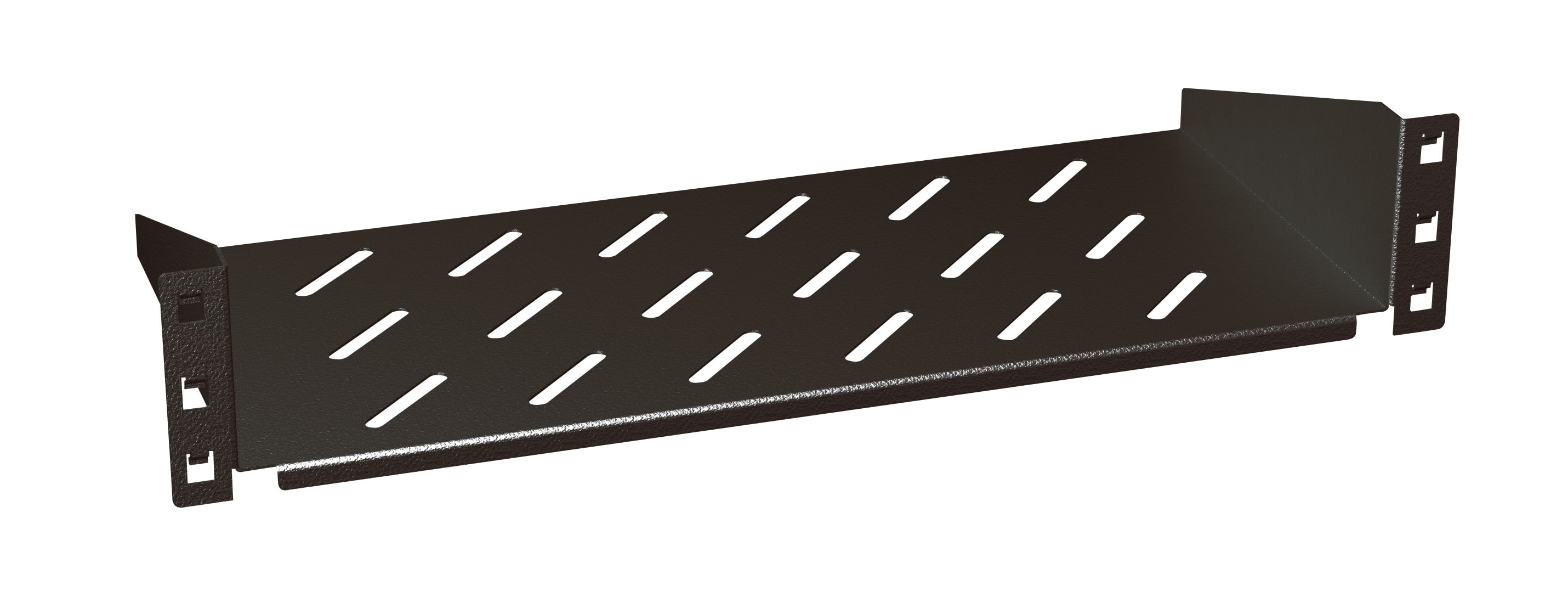 ripiano di supporto a sbalzo in lamiera - montaggio rapido mediante l’innovativo sistema Quick Fix senza viti - per installazione in quadri modulari 19” profondità 580 mm e 600 mm - portata massima 15kg - profondità 360 mm - colore nero RAL9005 - 2 unitàrack