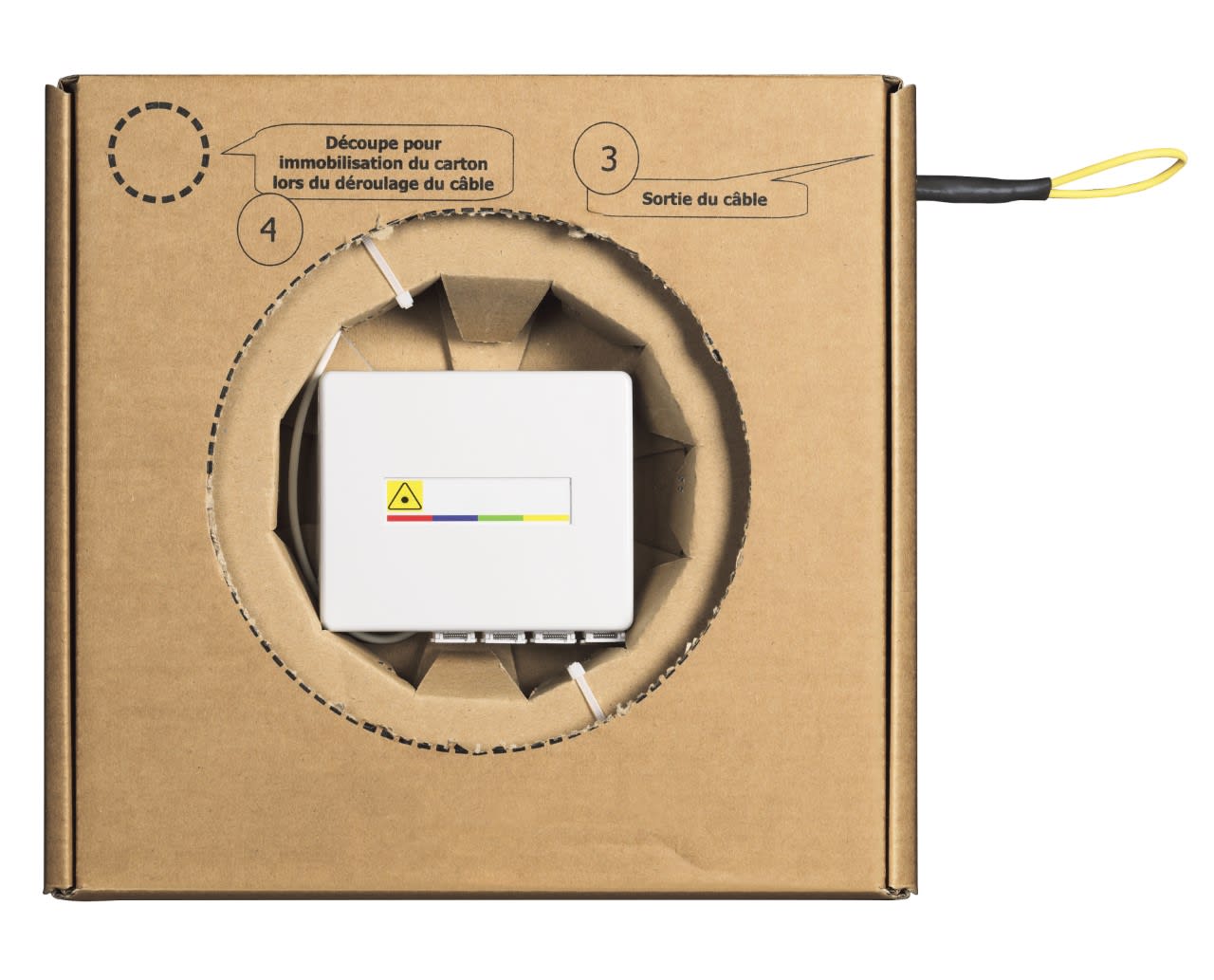STOA (scatola di terminazione ottica di appartamento da 20 metri) preterminata in box concavo preterminato 4 fibre e sistema di tiraggio.