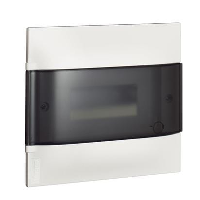 Centralino da incasso LINEA HABITA in resina termoplastica con portello fumè, 8 moduli DIN da completare con scatola da incasso