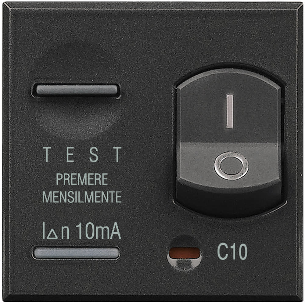 interruttore automatico differenziale 2P con 1P protetto Idn 10mA - 10A 230 Vac potere di interruzione 3 kA - antracite