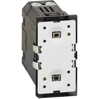 Attuatore da incasso, con 2 relè indipendenti 2x4A 250V a.c. e neutro per funzione “zero crossing” - per carichi singoli o doppi. Da abbinare ai comandi digitali art. K...8010 e art. K...8011. 1 modulo.