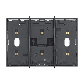 Frame elettrificato con barrette estetiche (rimovibili) di divisione tra i comandi. Per l’installazione di max. 3 comandi digitali o cover art. KW/KG/KM8100. Installazione in scatola da 3 moduli con supporto K4703. Colore nero.