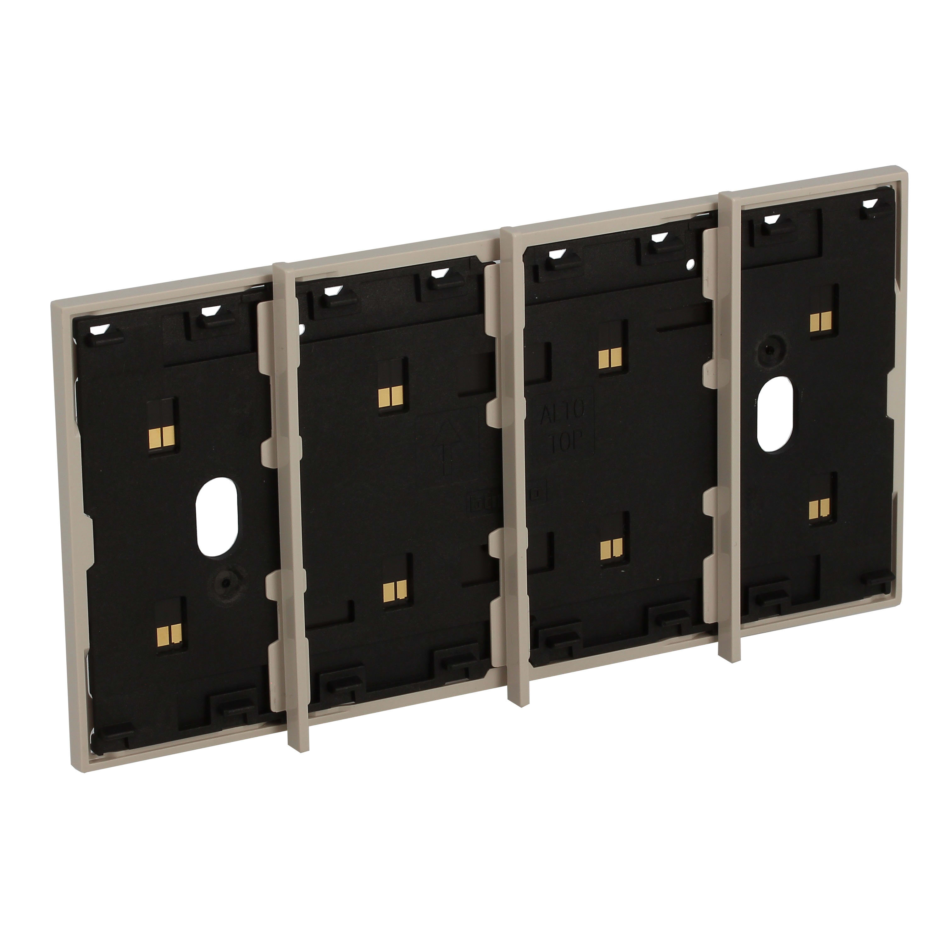 Frame elettrificato con barrette estetiche (rimovibili) di divisione tra i comandi. Per l’installazione di max. 4 comandi digitali o cover art. KW/KG/KM8100. Installazione in scatola da 4 moduli con supporto K4704. Colore sabbia.