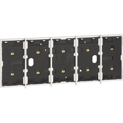 Frame elettrificato con barrette estetiche (rimovibili) di divisione tra i comandi. Per l’installazione di max. 5 comandi digitali o cover art. KW/KG/KM8100. Installazione in scatola da 4 moduli con supporto K4704. Colore sabbia.