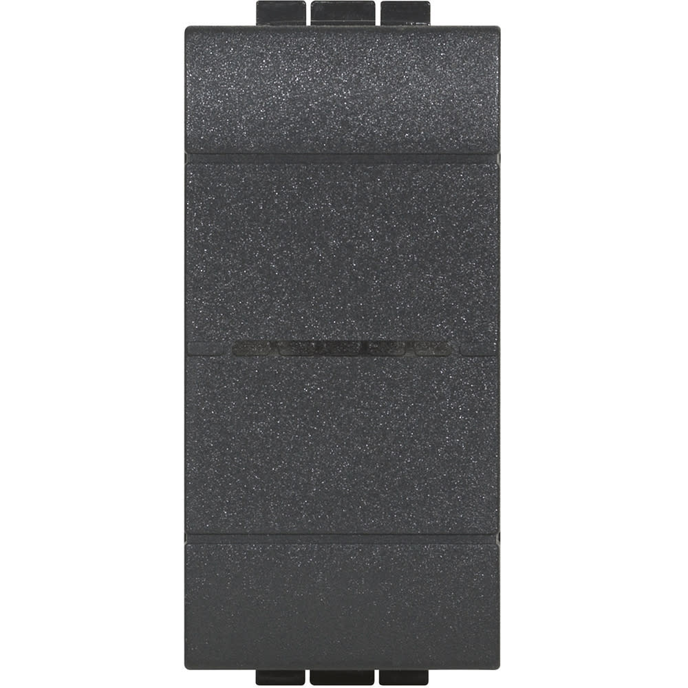Comando luci wireless. Permette il controllo ON/OFF e dimmerizzazione di uno o più dispositivi connessi per il comando di luci. Può essere installato in qualsiasi scatola da incasso senza alcun cablaggio. La batteria può essere sostituita senza rimuoverlo dal supporto. LED integrato per la segnalazione batteria scarica. Alimentazione a batteria 3V tipo CR2032 (fornita a corredo) con autonomia di 8 anni - Ingombro 1 modulo - Dispositivo fornito in confezione con mostrine di finitura nei colori bianco, tech, antracite.