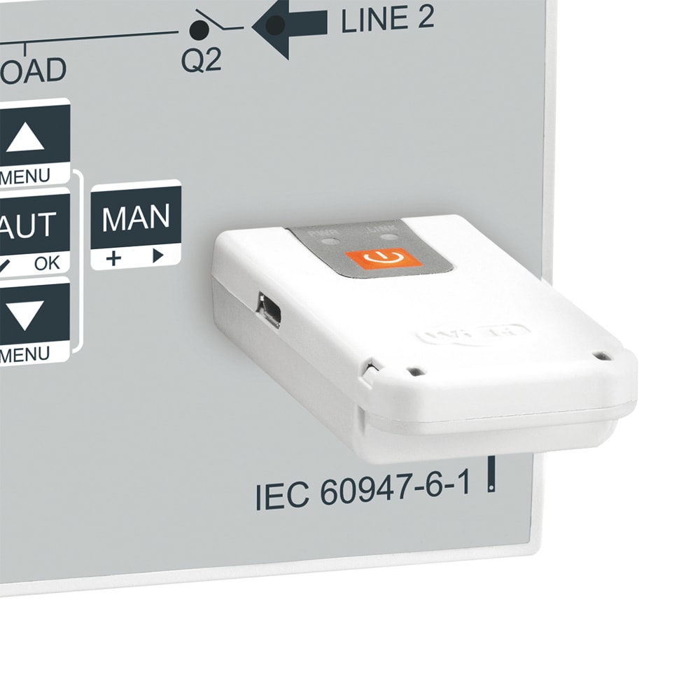Interfaccia frontale WiFi per programmazione/gestione ATS. Isolamento galvanico per connessioni sicure garantito tramite comunicazione a infrarossi con porta frontale centrale