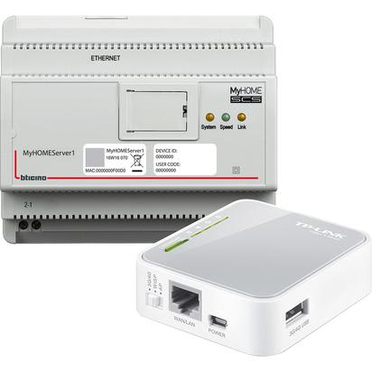 Kit composto dal server art. MyHOMEServer1 e un Access Point per realizzare la comunicazione tra l’impianto MyHOME, a cui viene collegato, ed uno smartphone o tablet dove è installato l\\'applicativo HOME+CONTROL. Da impiegare per l\\'associazione dei dispositivi in fase di messa in funzione dell\\'impianto con l\\'applicativo HOME + PROJECT.