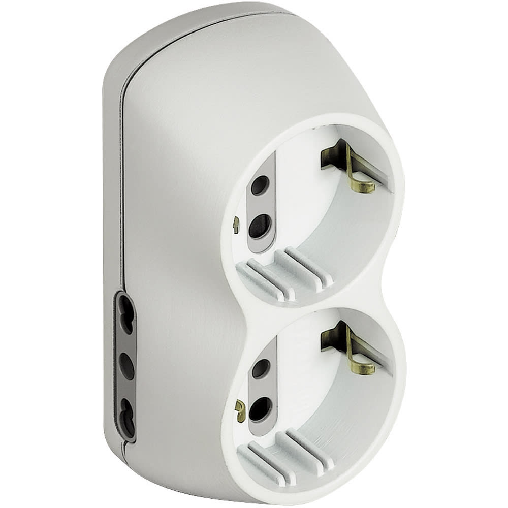 Adattatore B4 con 2 prese bipasso 10/16A e 2 prese tedesche, spina 16A di colore bianco - appendibile