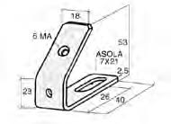 Staffa inclinata a 45°. Portabarre standard tipo “1” M6 con fissaggio a 1 vite.