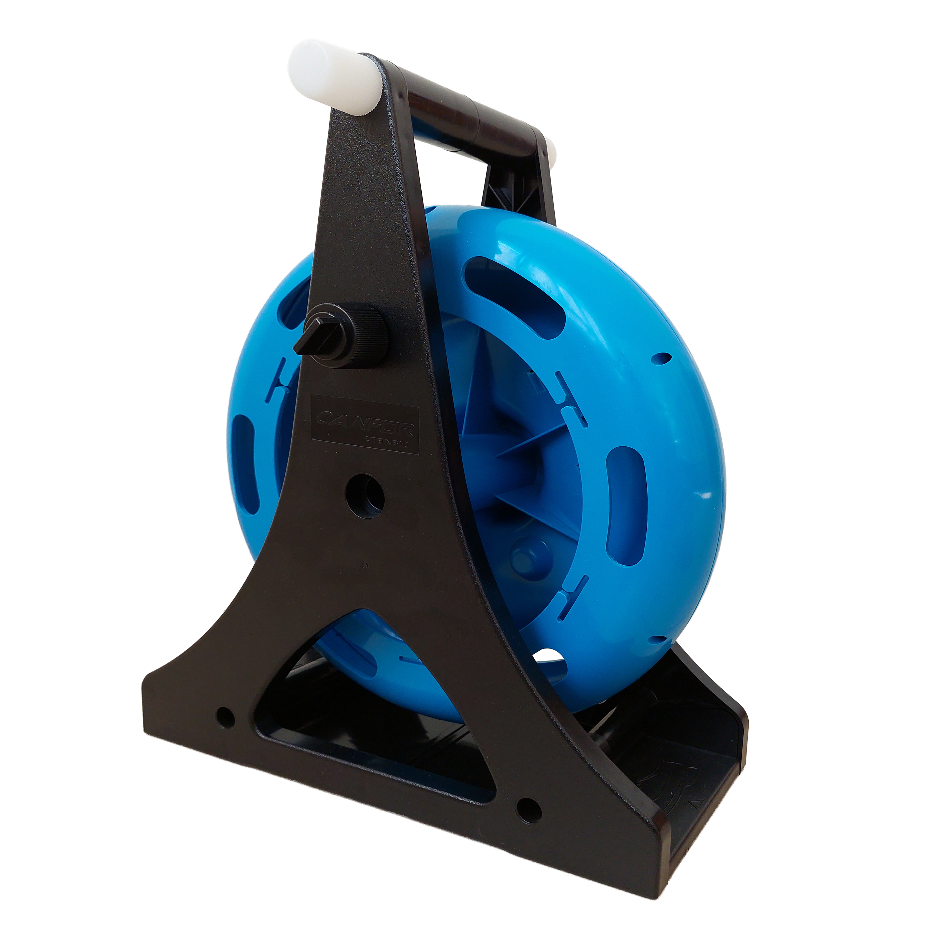 Aspo in plastica ø 320 mm girevole su cuscinetti su telaio verticale realizzato in plastica antiurto con pratica impugnatura per il trasporto. Sul supporto verticale è ricavato un alloggio guidafilo con vite a nasello per consentire un facile svolgimentoe riavvolgimento della sonda all’interno del cestello e per far sì che quest’ultima sia bloccata e permetta l’inserimento ed il riavvolgimento della stessa all’interno dell’aspo. Nell’impugnatura sono ricavati gli alloggi per gli accessori d’uso e di riparazione. Adatto per le sonde: 163 fino a m 50; 167 fino a m 60; 176 fino a m 30