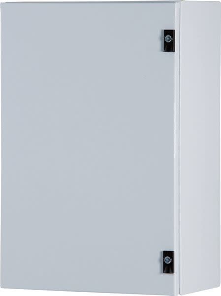 Cassetta composta da corpo, porta cieca esterna, piastra interna fissata sul retro e piastra passacavi • Corpo in lamiera pressopiegata e saldata sp. 12-15/10 • Porta in lamiera sp. 15-20/10 • Piastra interna in lamiera sp. 15-20/10 sendzimir • Guarnizioni, poliuretaniche applicate in colata continua • Cerniere reversibili con apertura 110° • Serratura con impronta doppia aletta • Verniciatura con polveri epossipoliestere termoindurenti in tinta RAL7035 bucciato • Grado di protezione IP 66 - TYPE 4