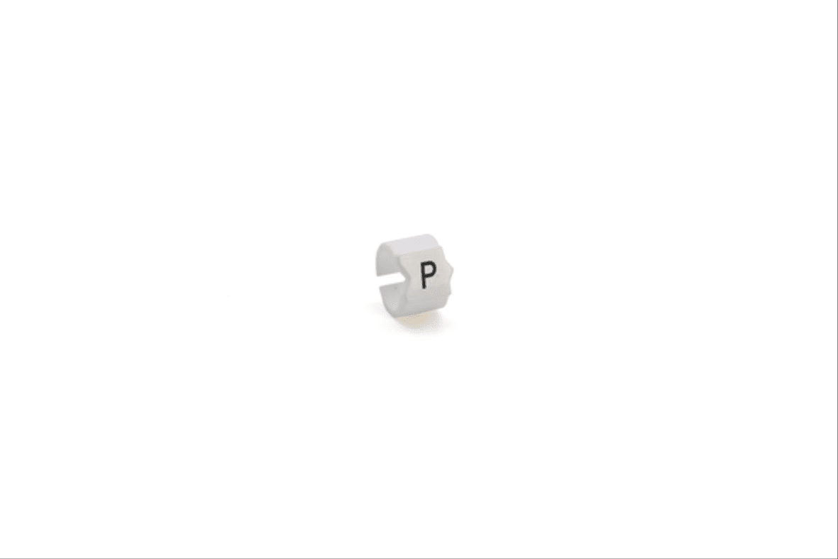 SEGNACAVO SM-15 SNAP SU SUPPORTO, PER CAVI DI DIAMETRO 5,8-8,5mm E SEZIONE 10-16mmq, BIANCO, CON STAMPA NERA LETTERA "P", SACCHETTO