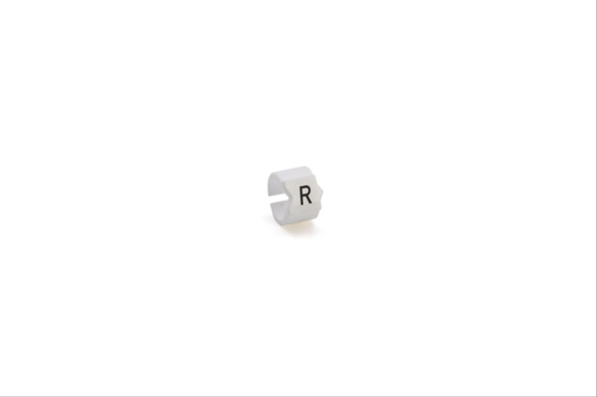 SEGNACAVO SM-15 SNAP SU SUPPORTO, PER CAVI DI DIAMETRO 5,8-8,5mm E SEZIONE 10-16mmq, BIANCO, CON STAMPA NERA LETTERA "R", SACCHETTO