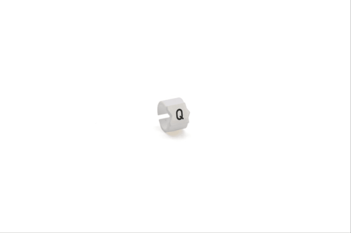 SEGNACAVO SM-17 SNAP SU SUPPORTO, PER CAVI DI DIAMETRO 8,5-11,5mm E SEZIONE 25-35mmq, BIANCO, CON STAMPA NERA LETTERA "Q", SACCHETTO
