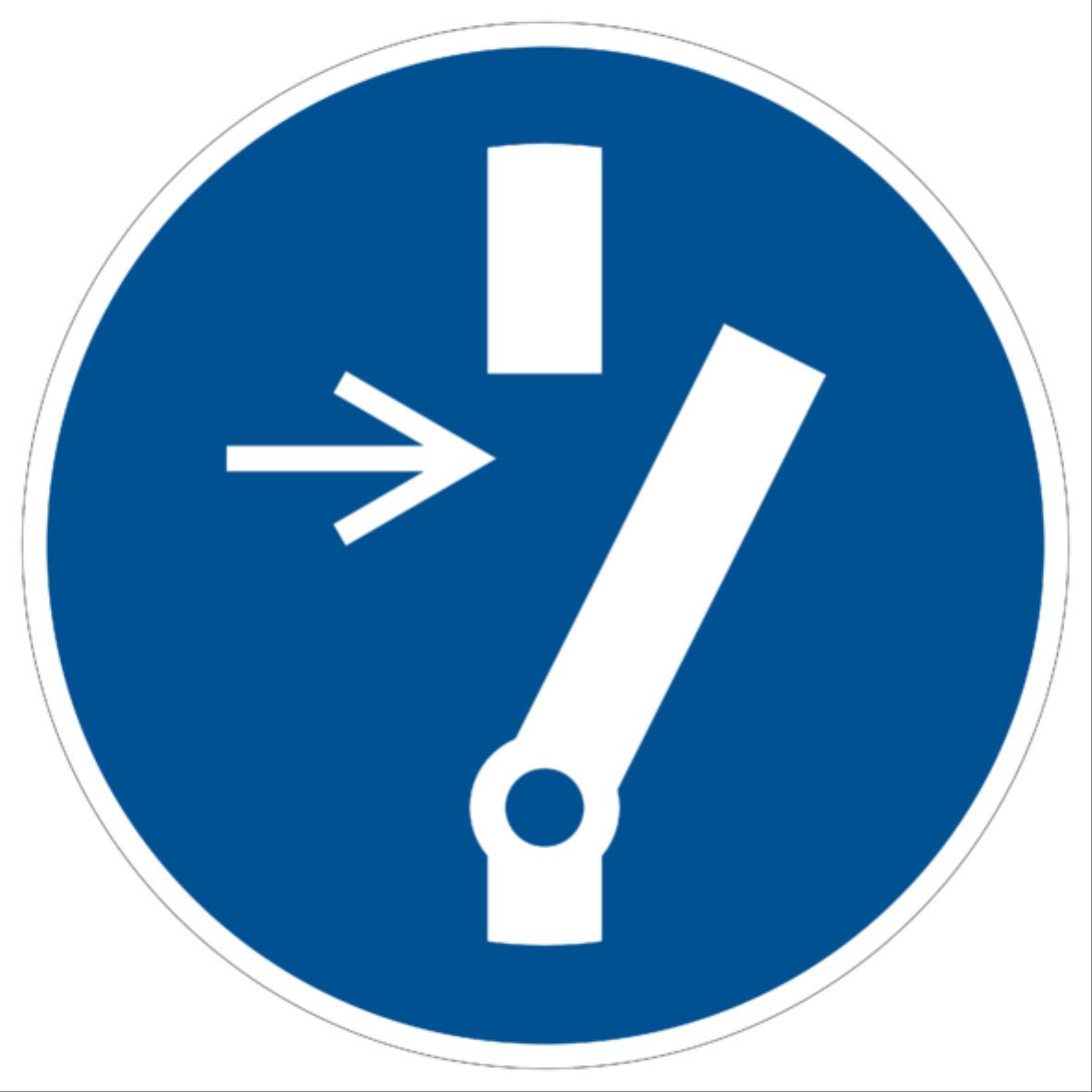 ETICHETTA ADESIVA DI PRESCRIZIONE MS-BC, SIMBOLO INTERROMPERE IL CIRCUITO PRIMA DI INIZIARE I LAVORI, DIMENSIONE 25mm