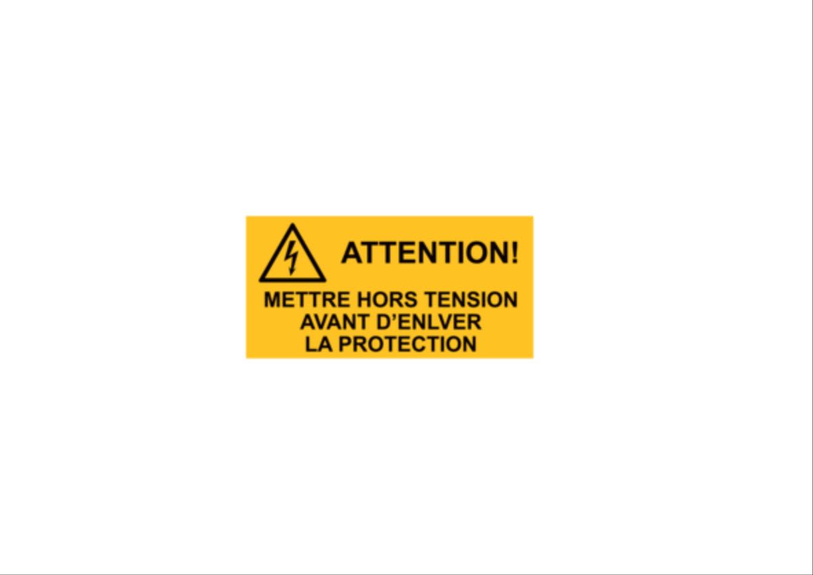 Etichetta adesiva per impianti elettrici, testo "attenzione! togliere tensione prma di rimuovere la protezione"