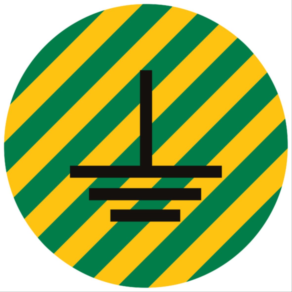 ETICHETTA ADESIVA PER APPARECCHIATURE CS-EYG, SIMBOLO GIALLO-VERDE TERRA, DIMENSIONE 31,5mm