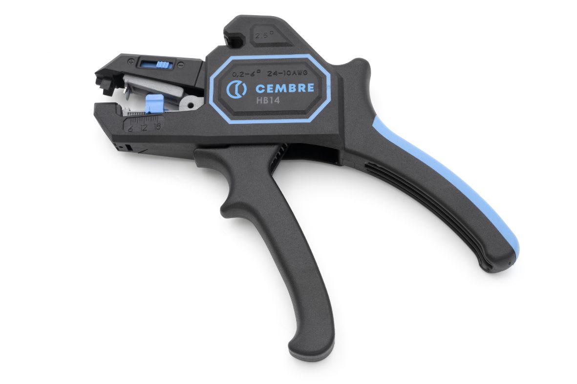 Pinza per spelatura automatica HB14 regolazione automatica della forza di spelatura in base alla sezione del cavo; la forza di spelatura e adattabile manualmente anche a isolanti molto morbidi o tenaci per cavi da 0,2 a 6,0 mm?. lunghezza di spelatura regolabile da 6 a 18 mm. Taglio conduttori da 0,2 a 2,5 mm?.