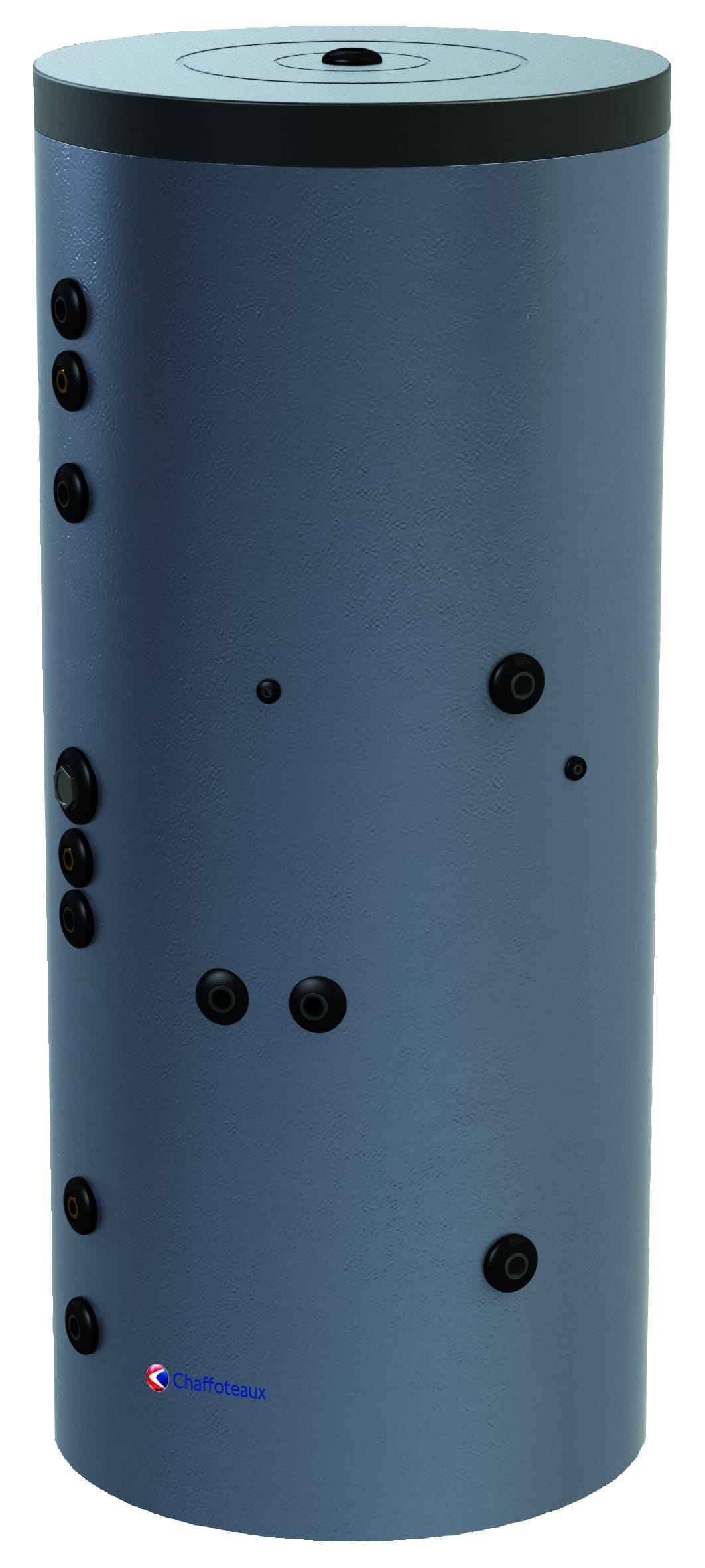 Bollitore inerziale verticale a pavimento monoserpentina.