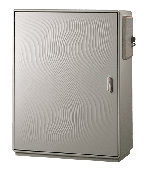 Realizzato con cassonetto portacontatore incorporato sul fianco destro - accesso indipendente con serratura diversificata (in esecuzione standard triangolare luchettabile). Adatto per il montaggio diretto dei contatori elettronici: max n°1 gruppo di misura integrato monofase tipo GMI-GMY; max n°1 monofase per potenze fino a 10Kw tipo GEM-GISM, fissaggio con n°1 basetta T5 A2 (matricola 286103); max n° 1 trifase per potenze fino a 16.5Kw tipo GET2A, fino a 30Kw tipo GIST, fissaggio con n°1 basetta T5 A4 (Matricola 286142).