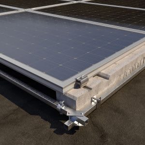 Il sistema con supporto in conglomerato cementizio ZC0030, consente di installare una singola fila di moduli fotovoltaici disposti in orizzontale o verticale con inclinazione 0°. Il montaggio a scatto dei morsetti universali terminale KMTU2950 e centrale KMCU2950 avviene in corrispondenza del lato corto dei moduli.