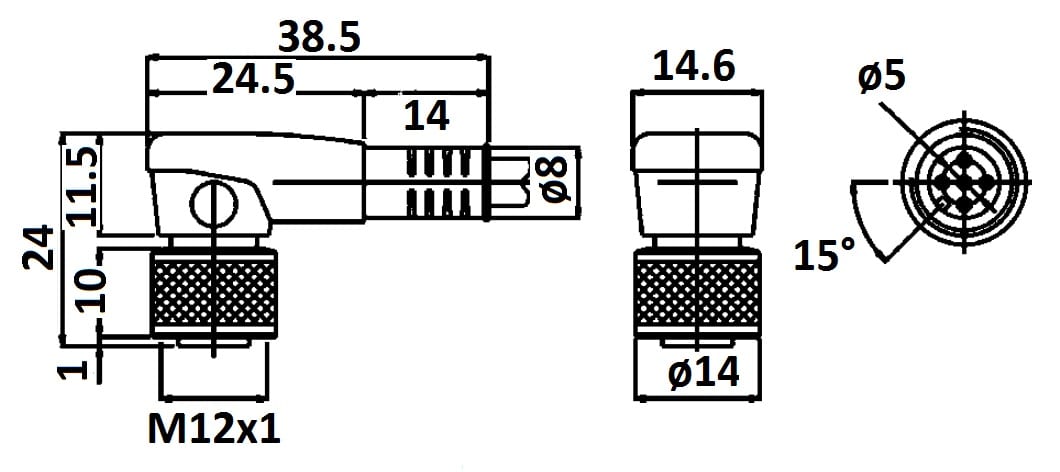 Disposizione dell'ingresso cavi, lato campo - Piegato ad angolo