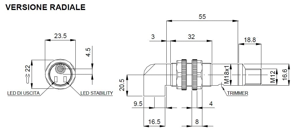 Diametro del sensore: