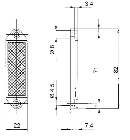 Riflettore prismatico 18 x 54 mm con supporto 22 x 82 mm.