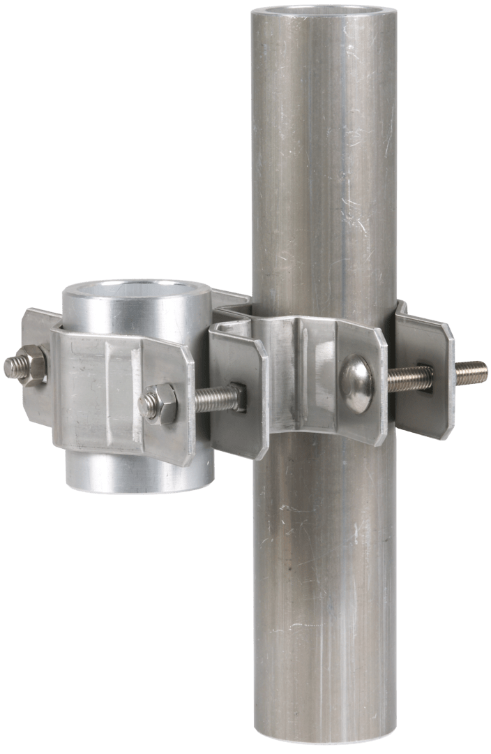 Fissaggio per ringhiere, per il montaggio di tubi portanti (D50 mm) oppure aste di captazione (D40 mm), p. es. su tubi.