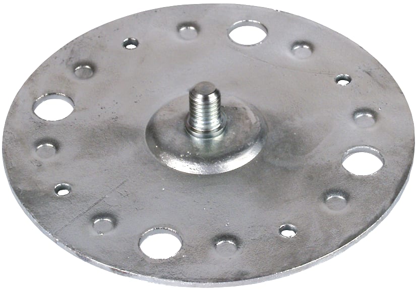 Piastra di fissaggio per montare impianti di captazione su tetti piatti e pareti. Esecuzione Fe/tZn grande e rotonda, con filetto M8 per staffa portafilo ad es. DEHNsnap o DEHNhold.