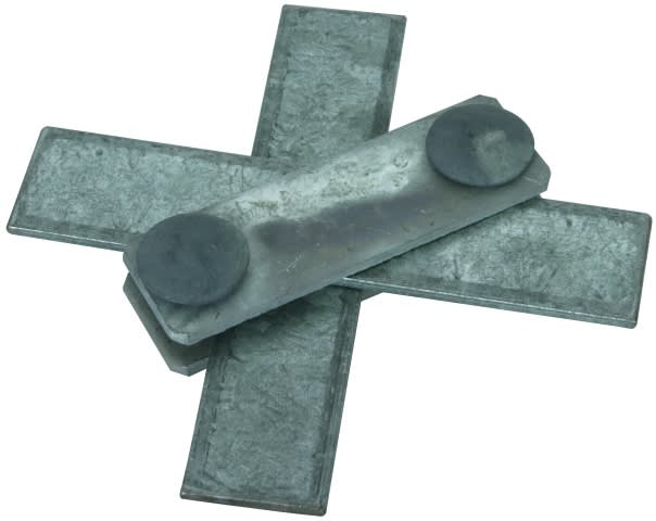 Morsetto di collegamento obliquo secondo CEI EN 62561-1, per collegamenti a croce e a "T" di due conduttori piatti. Esecuzione con antisvitamento delle viti M10.