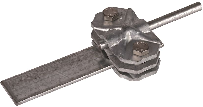 Morsetto di collegamento/sezionamento secondo CEI EN 62561-1 per il collegamento della calata con l'adduzione a terra. Esecuzione a tre componenti per conduttori tondi e piatti (larghezza fino a 40 mm).