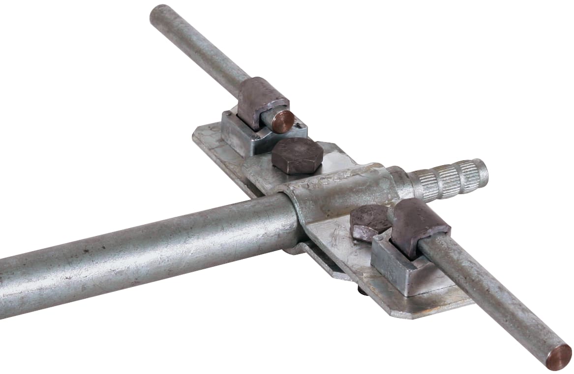 Collare di collegamento secondo CEI EN 62561-1 per la connessione di conduttori tondi su dispersori di profondità. Esecuzione con connettore KS (Td 7-10 mm) da mabo i lati.