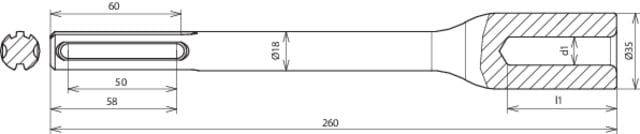 Attrezzo per martello demolitore per l'infissione di dispersori di profondita con martelli demolitori. Esecuzione con attacco SDS-max (rotonda 18 x 175 mm).