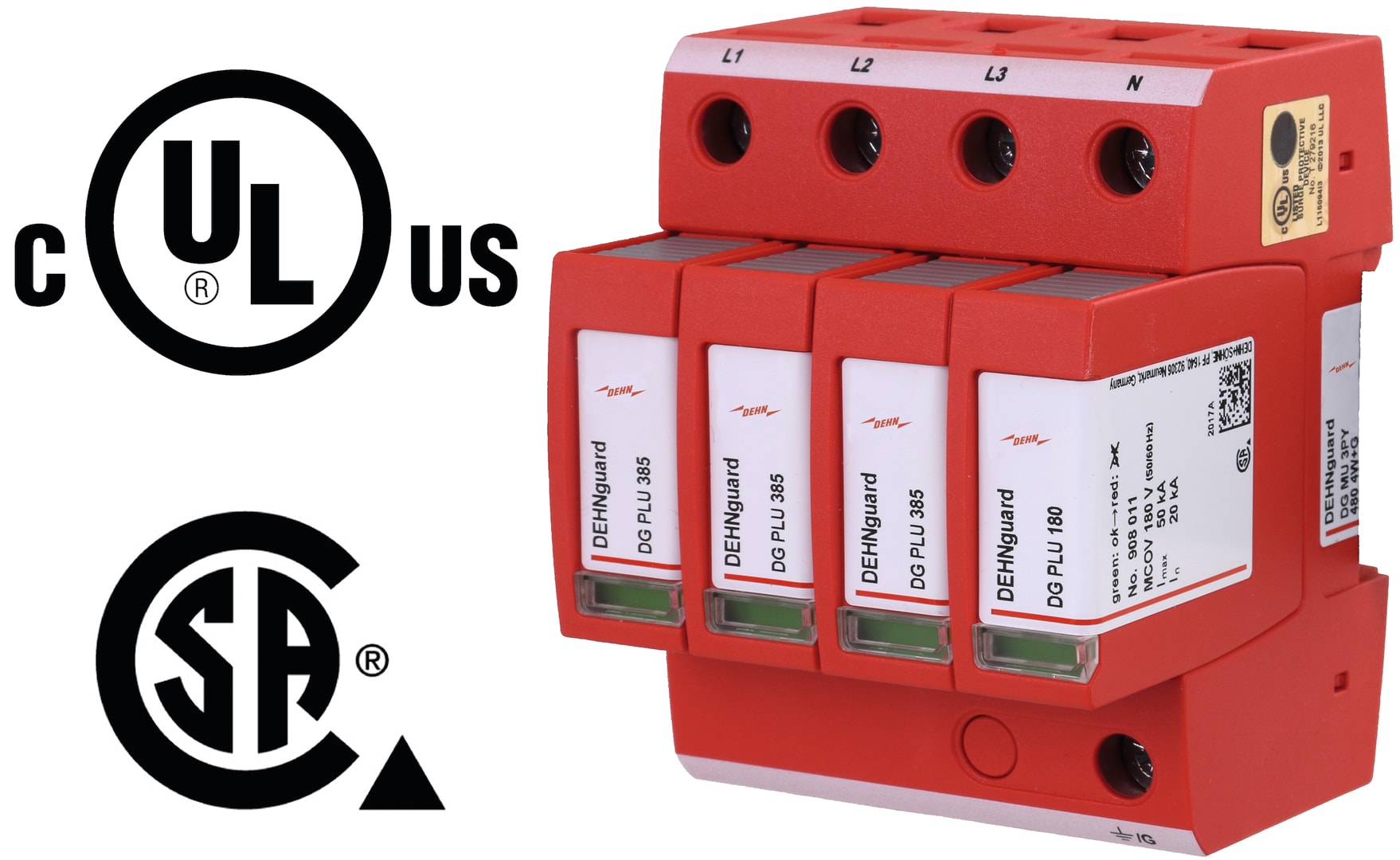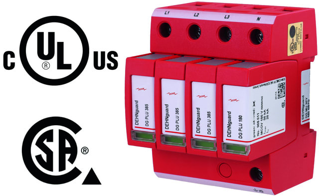 Limitatore di sovratensione multipolare DEHNguard MU, Open-Type 1 SPD omologato ANSI/UL 1449, costituito da basetta e moduli di protezione innestati. Elevata sicurezza dell?apparecchio tramite l?unita di monitoraggio con Thermo-Dynamic-Control. Permette la protezione di utenze finali. Per la protezione di sistemi trifase Wye.