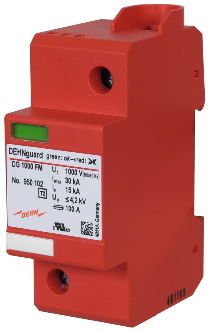 Limitatore di sovratensione unipolare, compatto, con tensione nominale UC = 1000 V AC, Tipo2 secondo EN 61643-11 con tensione massima di esercizio Uc = 1000V AC. Lata sicurezza di controllo tramite dispositivo di sezionamento con Thermo-Dynamik-Control. Per la protezione di impianti utilizzatori in BT da sovratensioni. Zum Schutz von Niederspannungs-Verbraucheranlagen vor Überspannungen.Per l'impiego nel concetto di protezione da fulminazione a zone, ai passaggi 0B – 1 e maggiori.