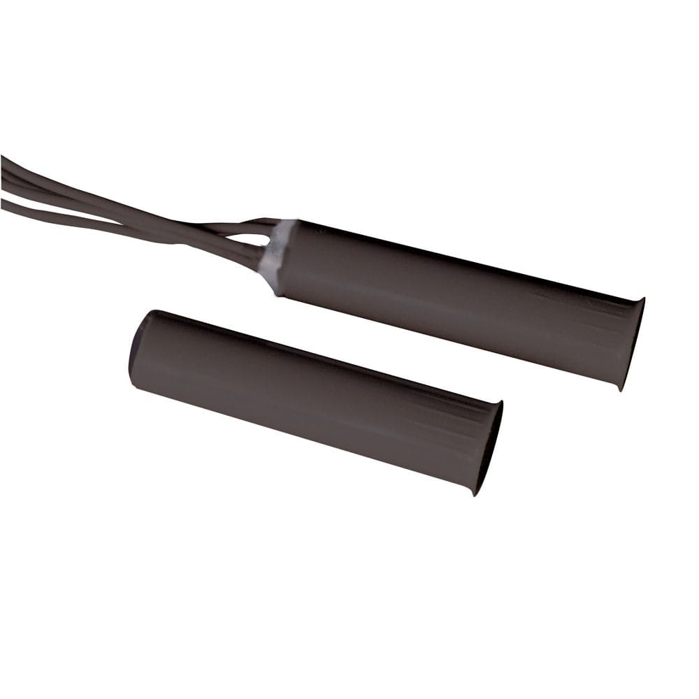 Contatto magnetico cilindrico in termoplastico. Montaggio ad incasso. Adatto a porte e finestre in alluminio, legno, PVC. Con loop filo antimanomissione (tamper). Colore: Marrone