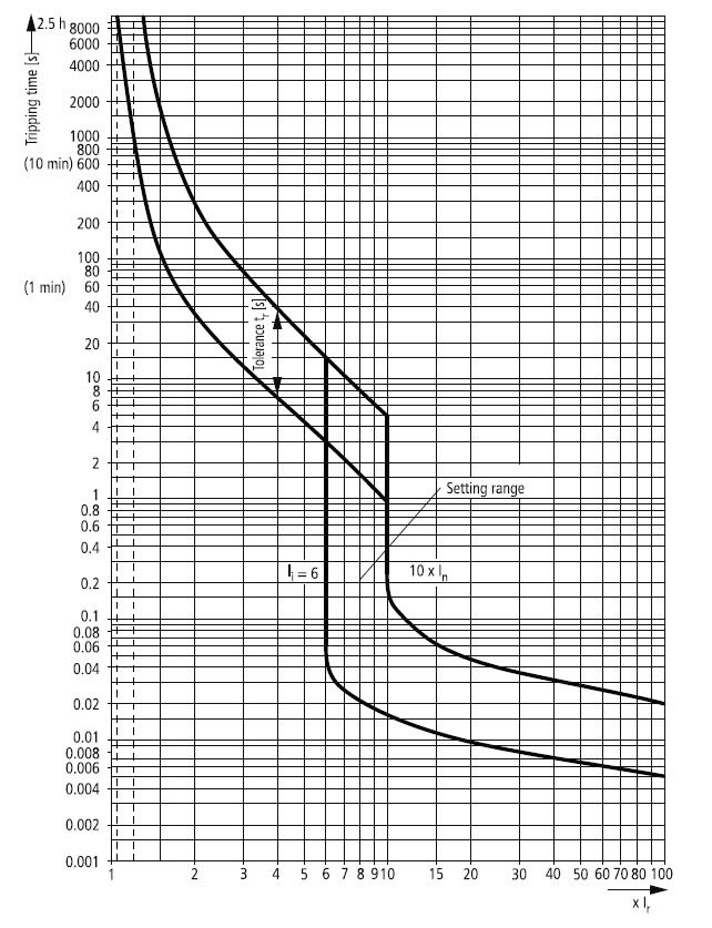 Intervallo di regolazione sganciatore di sovraccarico: