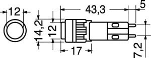 INTERRUTTORI A PULSANTE MINIATURA LUMINOSI UNIPOLARI CON LED. RESIST. ISOL.:500 MOHM. RESIST. CONT.:5 mOHM. PORTATA:1 A - 250 VCA. CORPO:poliam. caric.vetro. CONTATTI:ottone argent. Ø FORO PANN.:12 mm. TEMP. LAV.:-20°C ÷ +55°C. PER LAMPADE:4/7830. Col. Puls.: Rosso.
