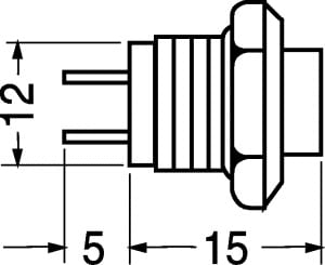PULSANTE MINIATURA CON AUTORITORNO. PORTATA:3 A -28 Vcc. CORPO:ottone nichelato. Col. Puls.: Rosso.