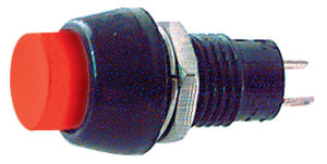PULSANTI MINIATURA CON AUTORITORNO. Contatto normalmente aperto. PORTATA:1 A - 250 V. CORPO:materiale fenolico. TERM.:a saldare in ottone. Col. Puls.: Nero.