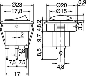 DEVIATORE BILANC. 2 POSIZ. NERO. PORTATA:6,5 A-250 V / 13 A-125 V. TENS. PROVA:1500 V / 1 min. CORPO:nylon rinf. vetro. CONTATTI:ottone nichel. TERMIN.:faston passo 4,80. FISSAGGIO:autobloccante. PER FASTON:4/11525. COPRIFASTON:4/11560.