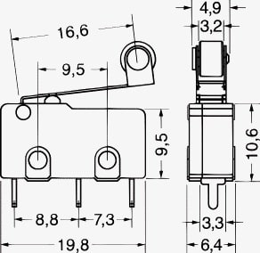 DEVIATORE MINIATURA. PORTATA:5 A - 250 V. FORZA AZION.:50 gr. CORPO:pvc. CONTATTI:ottone argent. TERMINALI:per C.S.