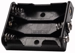 PORTAPILE PER 3 PILE STILO (AA-UM3). CORPO:polipropilene. CONNESSIONE:a bottone. MEDIANTE:4/11012 - 4/11013. PER BATTER.NI-CD:30/212. PER BATTER.NI-MH:30/208. PILE ALCALINE:30/24050 - 30/25050.