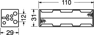 PORTAPILE PER 8 PILE STILO (AA-UM3). CORPO:polipropilene. CONNESSIONE:a bottone. MEDIANTE:4/11012 - 4/11013. PER BATTER.NI-CD:30/212. PER BATTER.NI-MH:30/208. PILE ALCALINE:30/24050 - 30/25050.