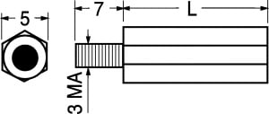 DISTANZIATORI ESAGONALI CON VITE • MATER.: ottone nichelato •CHIAVE: 5 mm