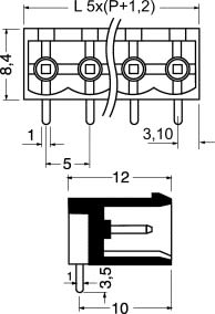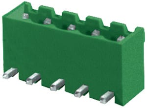 Con spalle. CORPO:polyamide 6,6 verde UL94V0. PASSO:5 mm. CONTATTO:ottone stagnato. PORTATA:12A - 250V. RES. ISOLAMENTO:> 5 M OHM. RIGIDITA'DIELETTRICA:2500 V. RIGIDITA' ISOLAMENTO:A.C. 1500 V/Min. TEMP. LAVORO:-30° +120° C. PER MORSETTI:serie 5/12002.